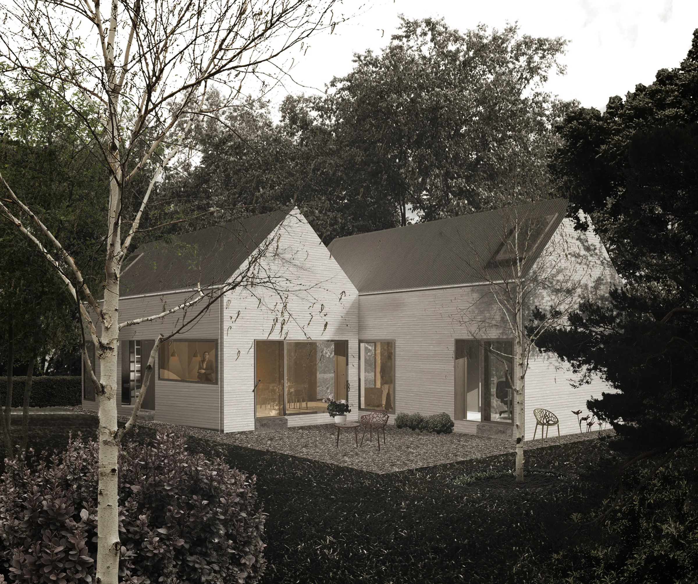 Familien bestilte et skitseforslag til deres kommende fritidshus, som skal være et mindre hus med en stor stue/køkken/alrum og tre soveværelser i alt. Familien ønsker to terrasser, en til sommerspisning og en til mere uformelle arrangementer. Huset er udformet som en klassisk lys murstensbolig med sadeltag i en neutral farve, der komplementerer omgivelserne og de andre boliger i kvarteret. Familien ønsker, at der skal være mulighed for at lukke så meget sollys som muligt ind i hjemmet.